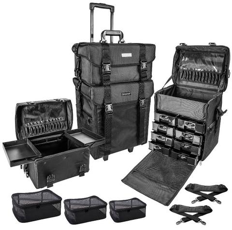 Nghệ sĩ trang điểm mềm mại cán Xe đẩy trường hợp mỹ phẩm với Bộ túi lưới miễn phí, màu đen tuyền
